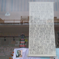 We are located in downtown Oakland, blocks away from Oscar Grant Plaza, a location central to the many actions that have occured in Oakland this Summer and in the past. We are printing flyers in different languages to invite community members to bring flowers, photos, candles, mementos, sound bytes, and anything else that will aid in the grieving of what and who we've already lost. As the altar grows, we'll document its progress and produce a zine that will be distributed upon its deinstallation.